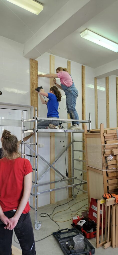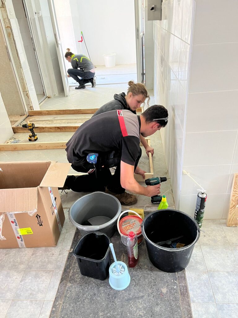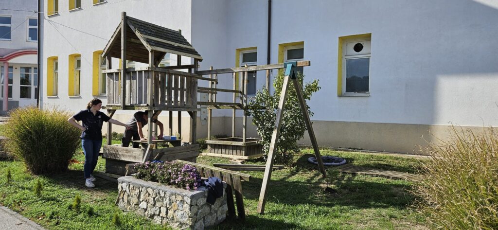 De dagen die volgden stonden volledig in het teken van aanpakken. Elke ochtend staken we de grens over om in Bosnië aan de slag te gaan. Binnen in het gebouw werd intensief gewerkt: muren en plafonds werden schoongemaakt en gewit, er werd gestuct en geschuurd, gipsplaten geplaatst en laminaat gelegd. Plinten werden gezet, lampen vervangen en deurposten afgewerkt. Ook werden muren bewerkt en geschilderd, een kapstok gemaakt en bedjes in elkaar gezet. Buiten werd gewerkt aan het speeltoestel, zodat ook de speelruimte voor de kinderen weer veilig en netjes gebruikt kan worden.